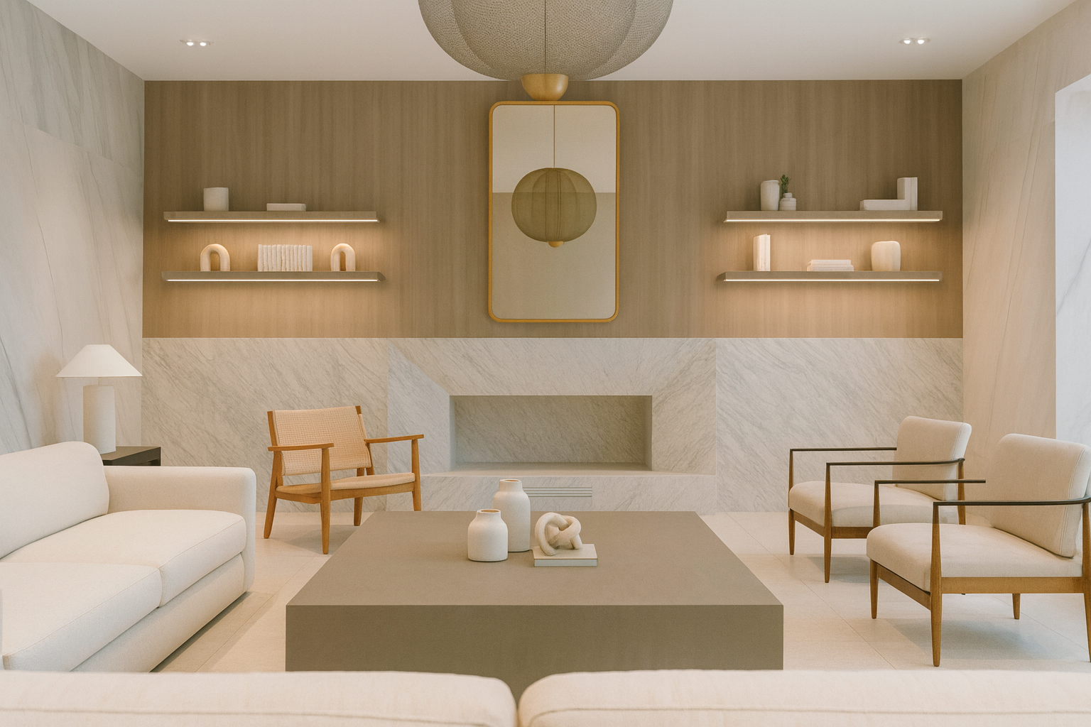 Retail Design Blog spotlights 99 Fleet Place in Downtown Brooklyn — designed by INPUT NYC — as a sleek, material-rich rental residence where refined contrasts define the aesthetic: cool white marble with grey veining meets warm natural wood across lobbies, lounges, kitchens and communal spaces, creating a minimalist yet deeply tactile environment that balances luxury with a grounded sense of place.