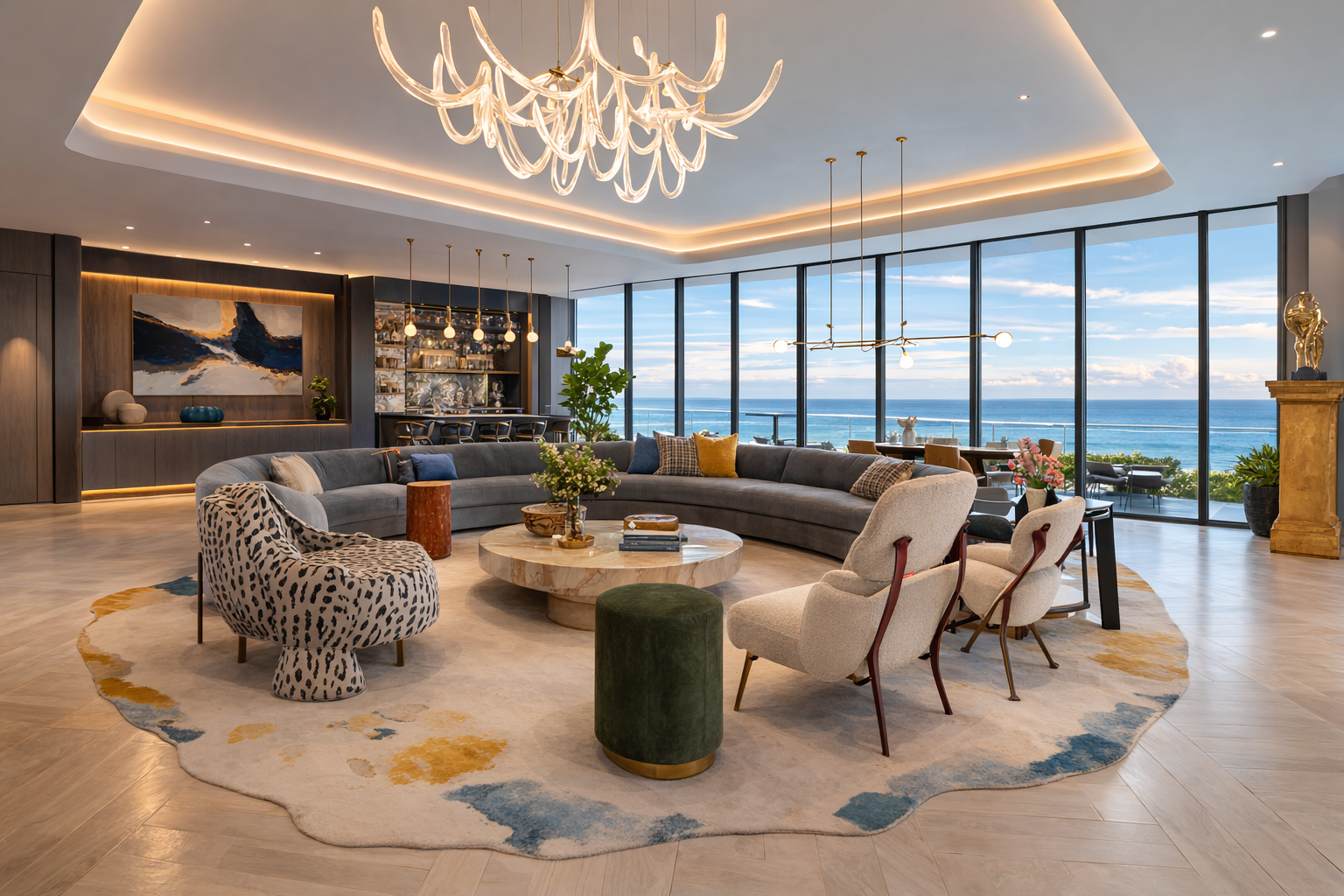 Global Real Estate Watch reports on Casa Baia, a completed residential interior design project by Guidon Studio in Miami that blends modern luxury with classical elegance. The article describes how the interiors use contrasting wood species, concealed doors and fluted textures to create a seamless architectural envelope, while a restrained palette and curated furnishings highlight ocean views and establish a cohesive environment that balances contemporary design with timeless warmth.